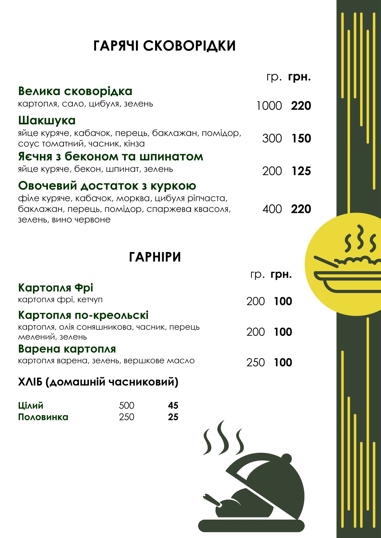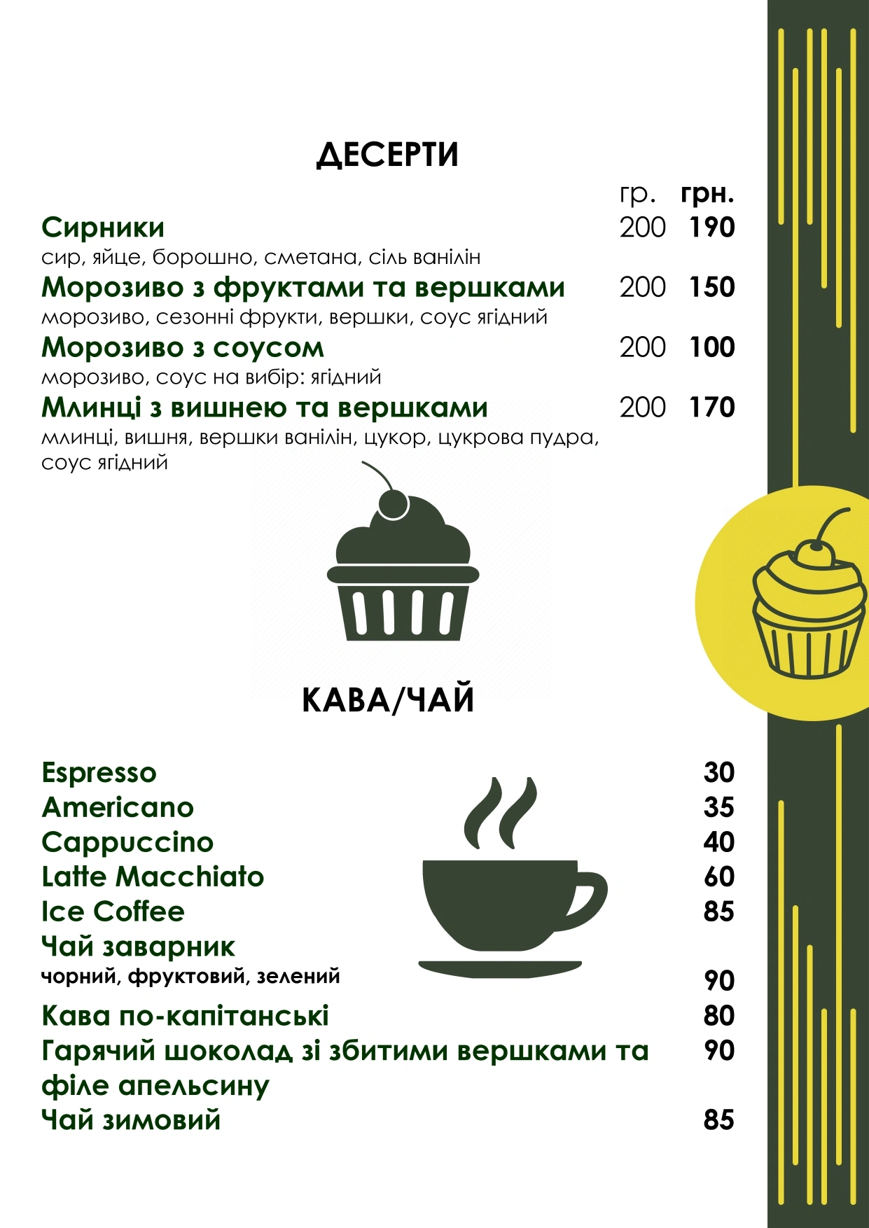 У нас тут є як м'ясні, так і вегетаріанські страви, а також чудові десерти!