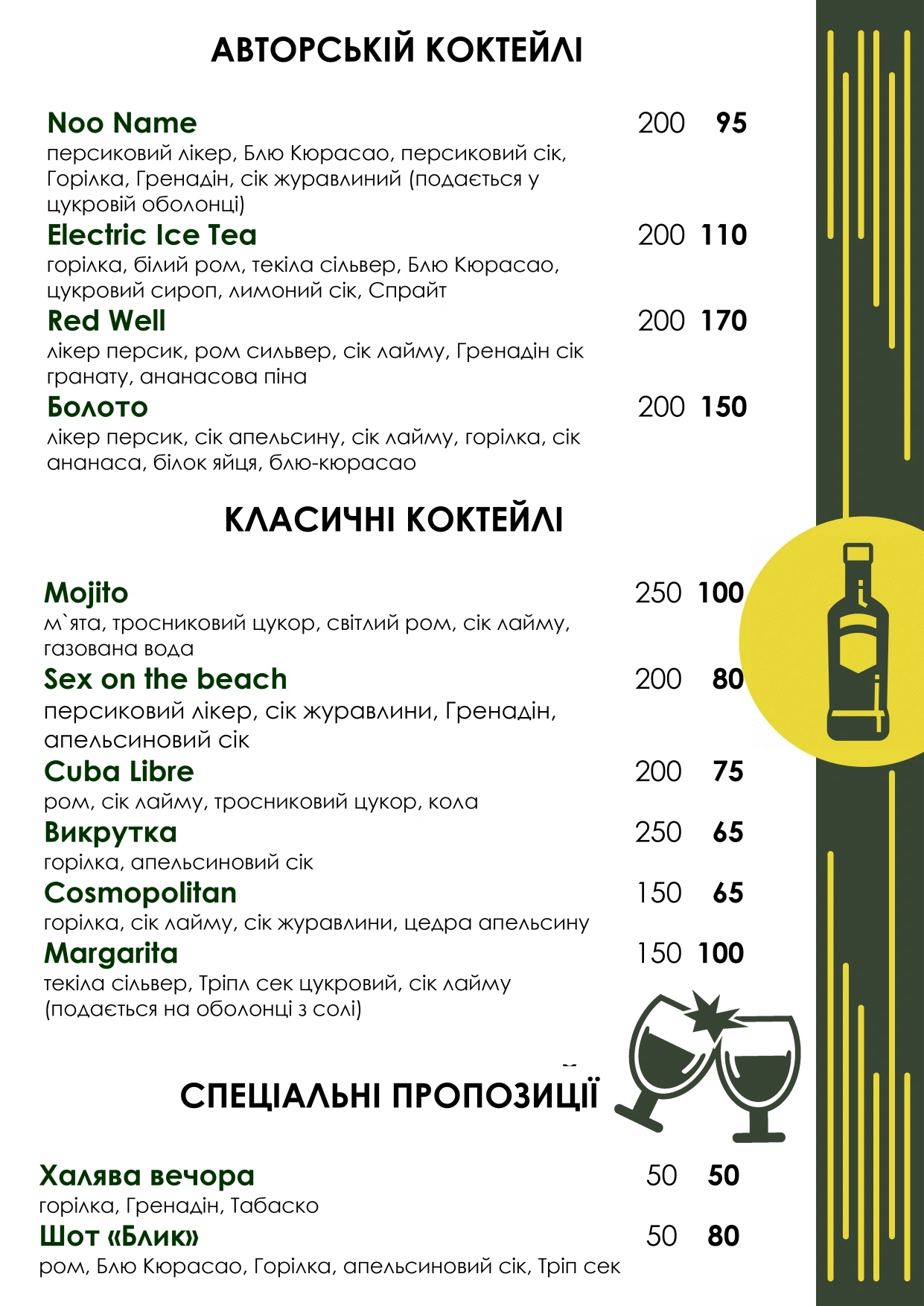 У меню нашого бару є все: від смаженої ефіопської кави до будь-яких алкогольних напоїв...
